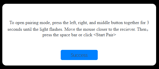 Once you see the ‘Sucess’ button, the pairing process has finished and you can already use your mouse wirelessly.